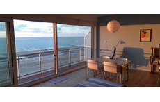 Appartement aan zee met een breed open zeezicht uit de woonkamer op de 7e verdieping.